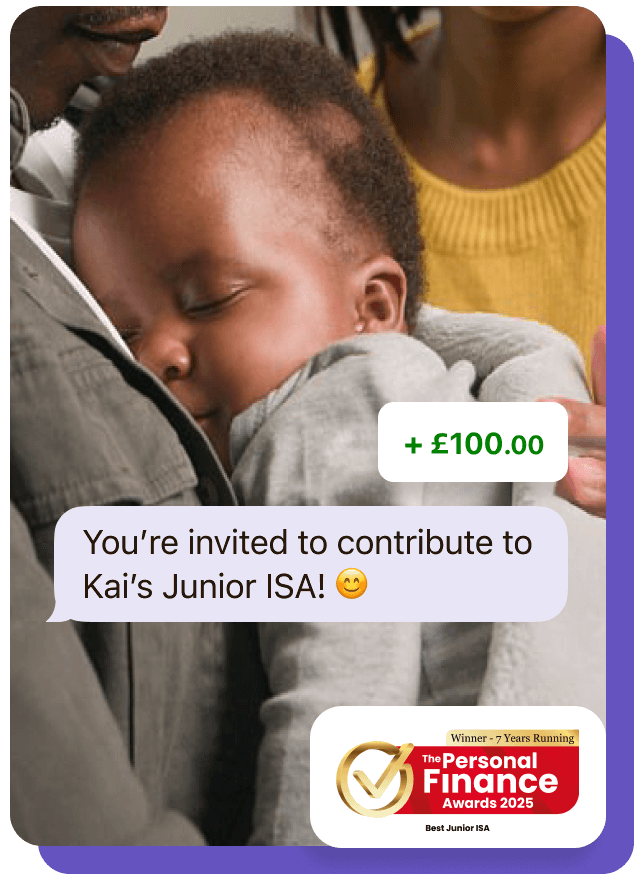 Which is why – whether it's family, friends, or that lovely lady next door – our Junior ISA lets you invite anyone to contribute towards and grow your child's savings.
